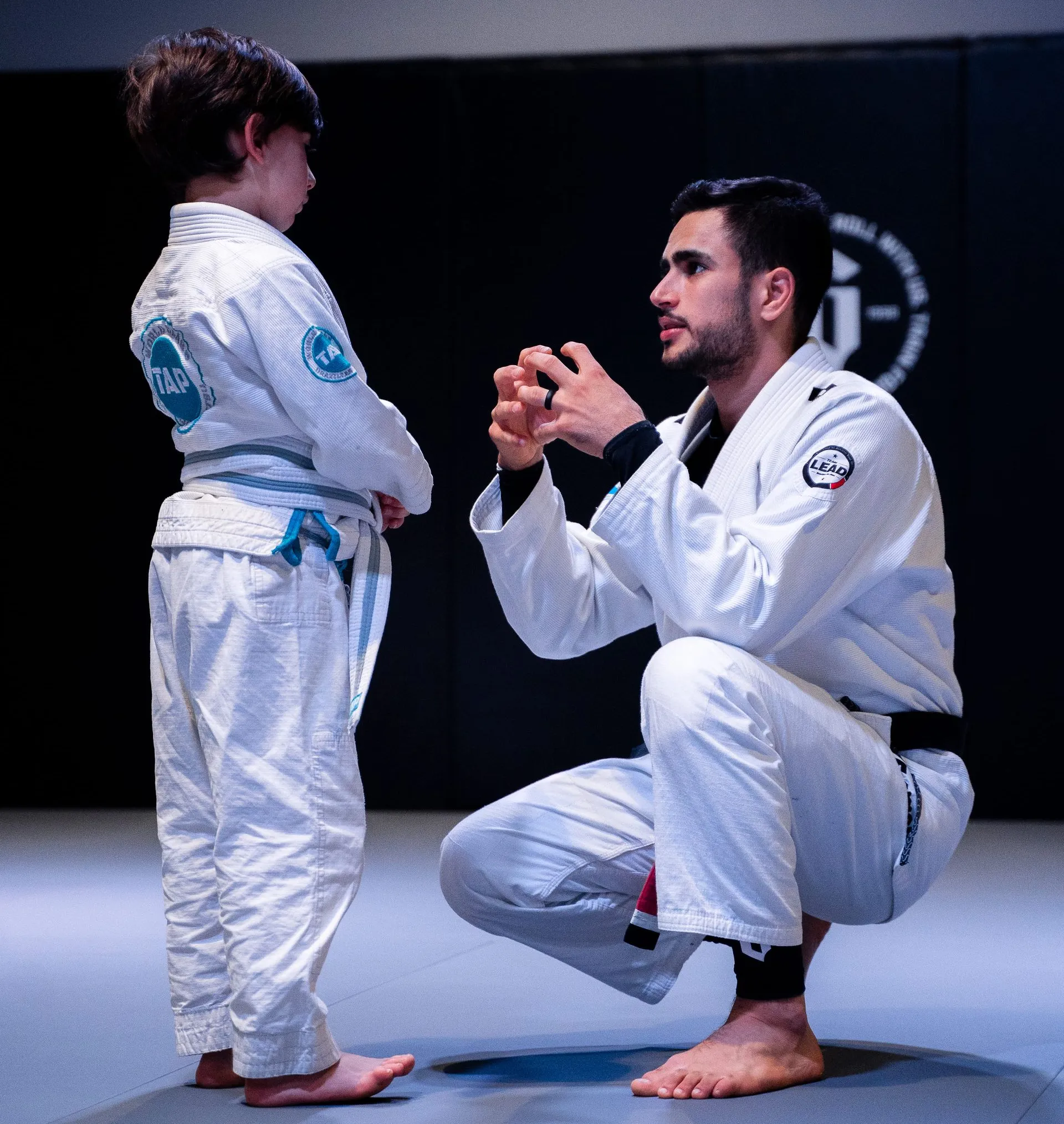 Goals: Under the expert guidance of World Champion Professor Thalys, students learn detailed explanations of rules, boundaries, and jiu-jitsu concepts, including when, how, and why to engage in a fight. They practice important skills like how to fall safely, maintain confident posture, and hold onto their training partner precisely. Through guided games, practice, and sparring, they learn simple moves and how to use them appropriately. These activities help them develop good behavior, better movement capabilities, and greater social awareness in class.